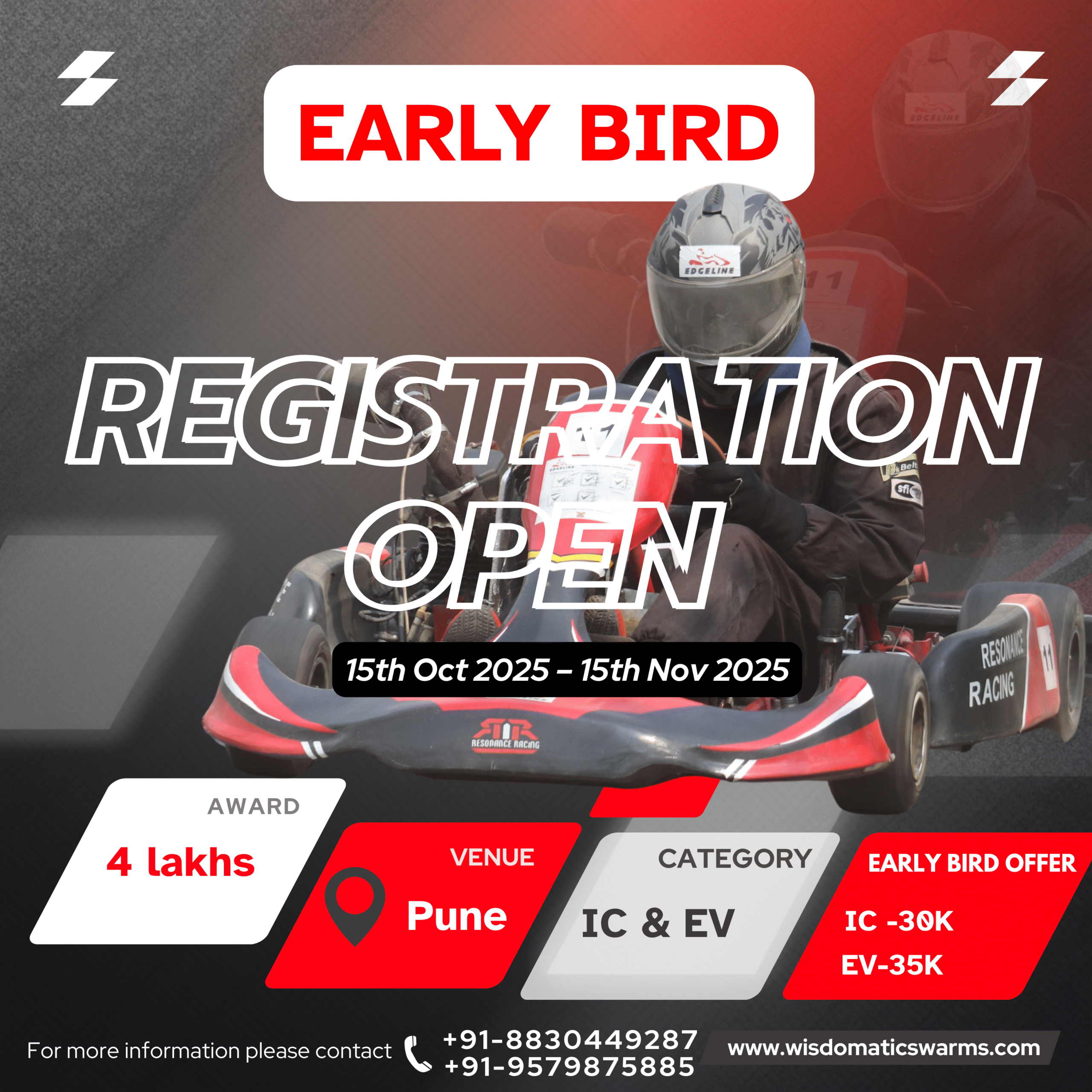 For IC go-karts 35,000/- and for EV Go-karts. To avail the offer contact 8830449287/9579875885